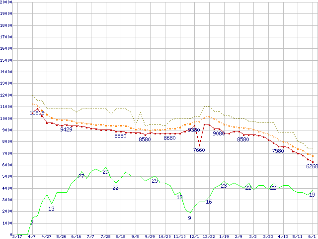 | HDT722516DLA380 (160GB,8MB)の価格推移 | | | (2005年3月17日~2006年6月1日) |