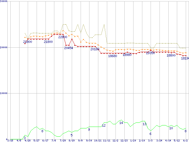 | Turion 64 MT-30 (1.6GHz,1MB) バルクの価格推移 | | | (2005年3月18日~2006年6月2日) |