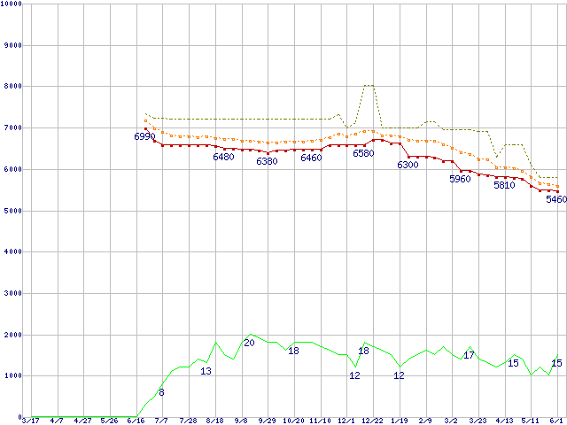 | 6L080P0 (80GB,8MB)の価格推移 | | | (2005年3月17日~2006年6月1日) |