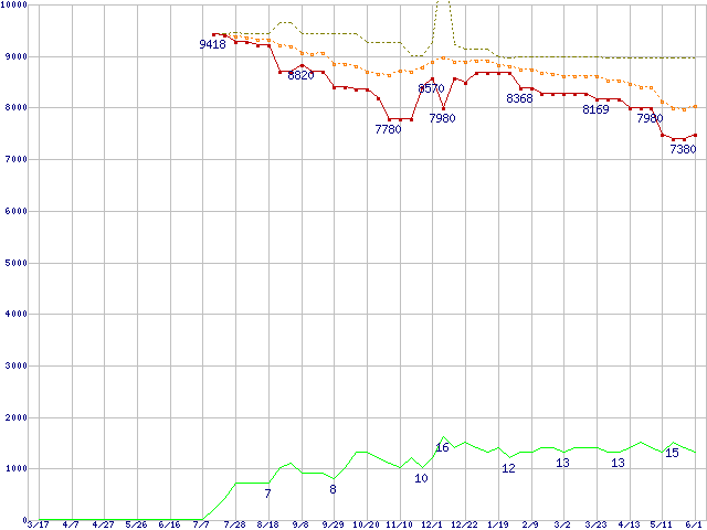 | WD1600JS (160GB)の価格推移 | | | (2005年3月17日~2006年6月1日) |