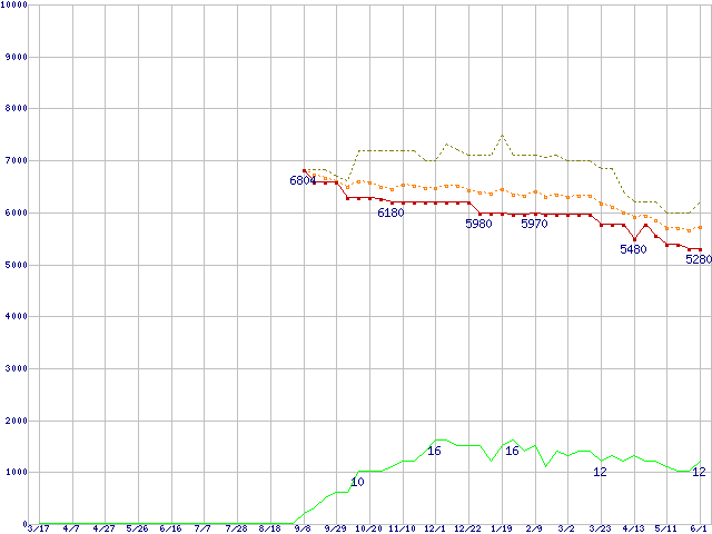 | ST3802110A (80GB,2MB)の価格推移 | | | (2005年3月17日~2006年6月1日) |