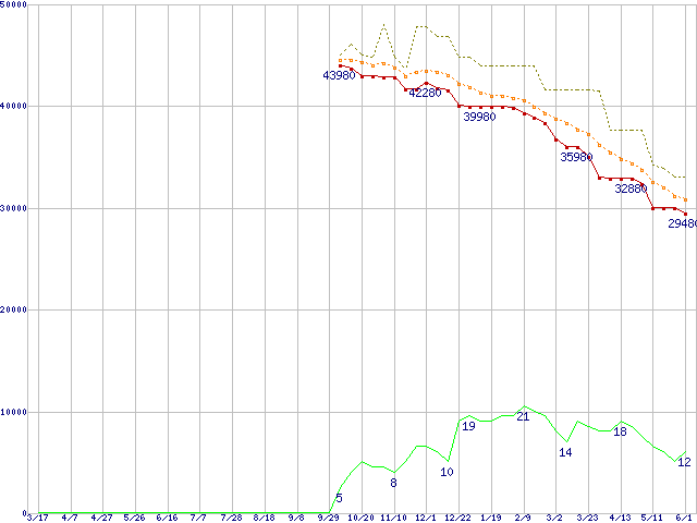 | ST3500641AS (500GB,16MB)の価格推移 | | | (2005年3月17日~2006年6月1日) |
