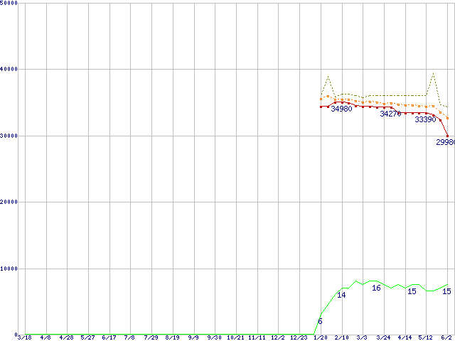 | Pentium 4 651 (3.40GHz)の価格推移 | | | (2005年3月18日~2006年6月2日) |