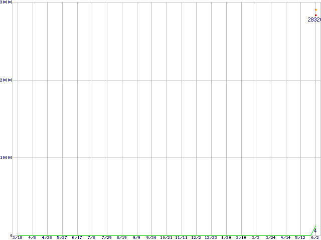 | Turion 64 X2 TL-52 (1.6GHz,512KB×2)の価格推移 | | | (2005年3月18日~2006年6月2日) |