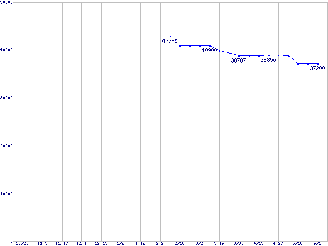 | WD Raptor X (10000rpm,Serial ATA/150,16MB,NCQ)の最安値推移 | | | (2005年10月20日~2006年6月1日) |