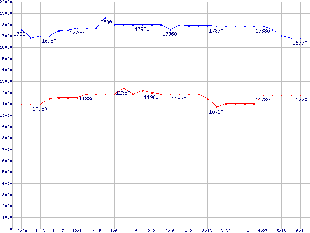 WD Raptor (10000rpm,Serial ATA/150,16MB,TLER)の最安値推移