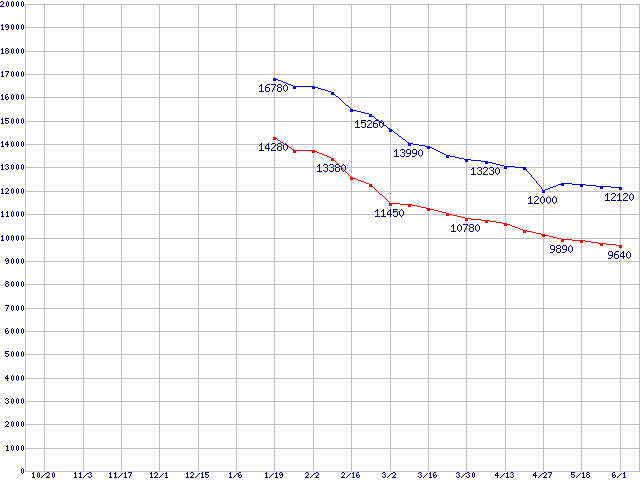 | MaXLine III (7200rpm,16MB,Serial ATA II,3Gbps)の最安値推移 | | | (2005年10月20日~2006年6月1日) |