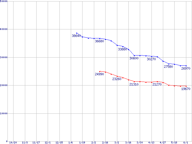 | DiamondMax 11 (7200rpm,16MB,Serial ATA II,3Gbps)の最安値推移 | | | (2005年10月20日~2006年6月1日) |