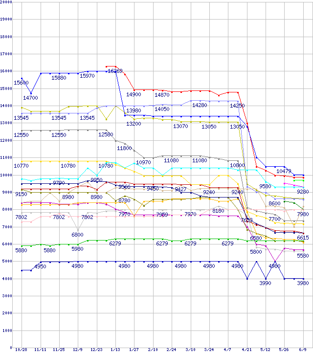 CPU主要製品(最安値1万円~2万円未満)の最安値推移