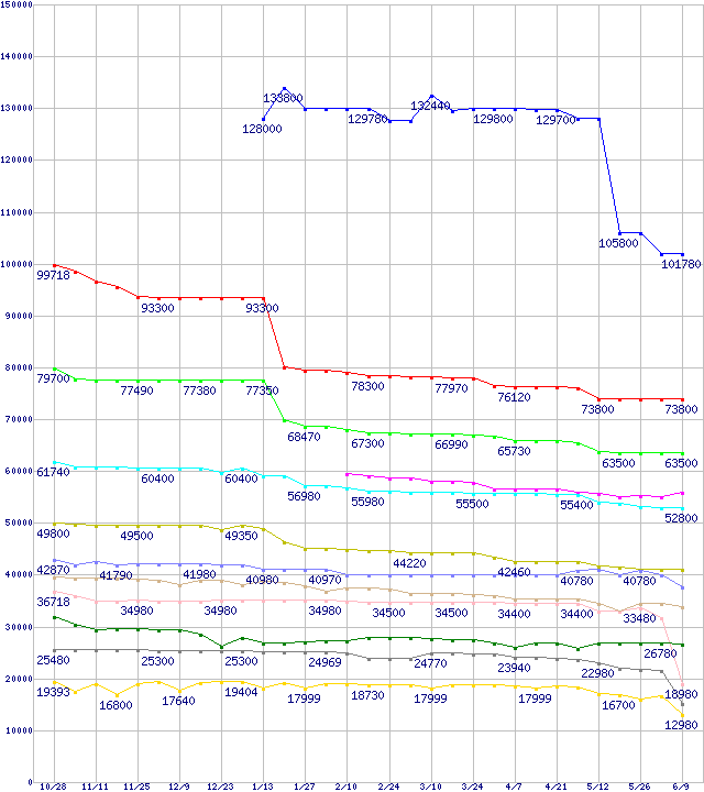 | Socket 939・FSB 1000MHzの最安値推移 | | | (2005年10月28日~2006年6月9日) |
