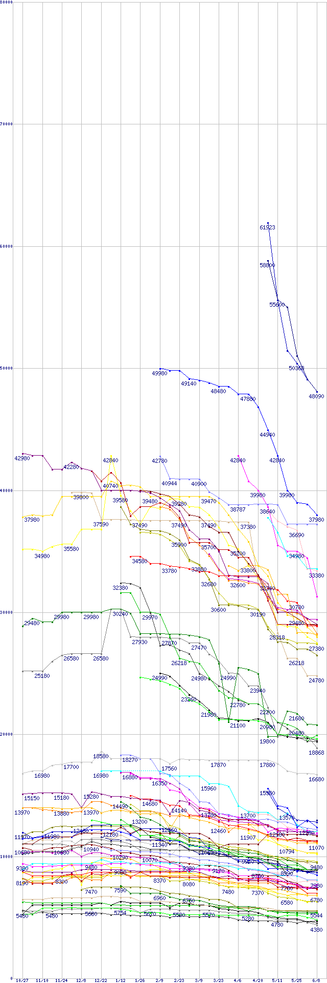| HDD主要製品の最安値推移 | | | (2005年10月27日~2006年6月8日) |