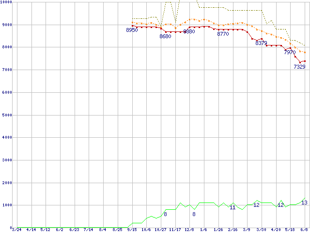 | ST3120814A (120GB,8MB)の価格推移 | | | (2005年3月24日~2006年6月8日) |