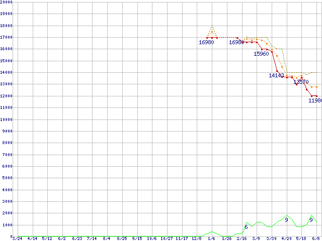 | WD3200KS (320GB)の価格推移 | | | (2005年3月24日~2006年6月8日) |