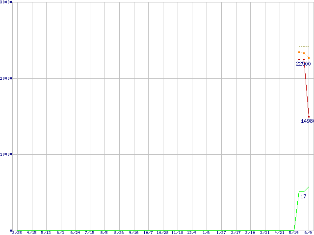 | Athlon 64 3500+ (2.2GHz,L2 512KB)の価格推移 | | | (2005年3月25日~2006年6月9日) |
