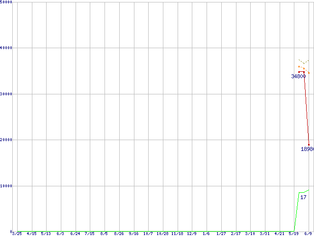 | Athlon 64 3800+ (2.4GHz,L2 512KB)の価格推移 | | | (2005年3月25日~2006年6月9日) |