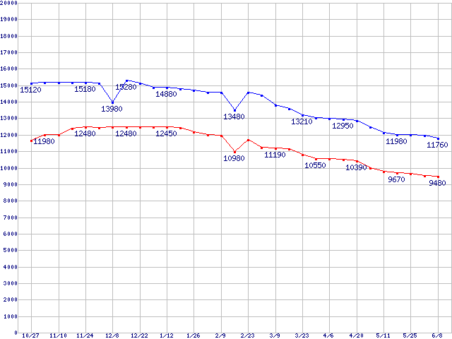| MaXLine III (7200rpm,16MB,Ultra ATA/133,RoHS指令準拠)の最安値推移 | | | (2005年10月27日~2006年6月8日) |