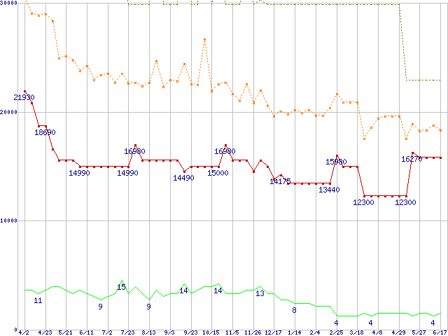 PC3200(DDR400) DDR SDRAM DIMM ECC対応 Registeredタイプの最安値推移