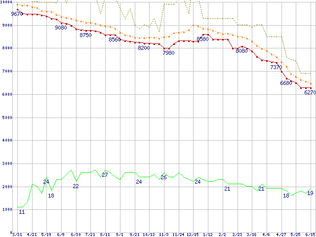 | HDT722516DLAT80 (160GB,8MB)の価格推移 | | | (2005年3月31日~2006年6月15日) |