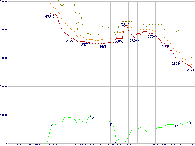 | HDS725050KLAT80 (500GB,8MB)の価格推移 | | | (2005年3月31日~2006年6月15日) |
