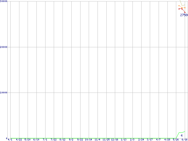 | Turion 64 X2 TL-52 (1.6GHz,512KB×2)の価格推移 | | | (2005年4月1日~2006年6月16日) |