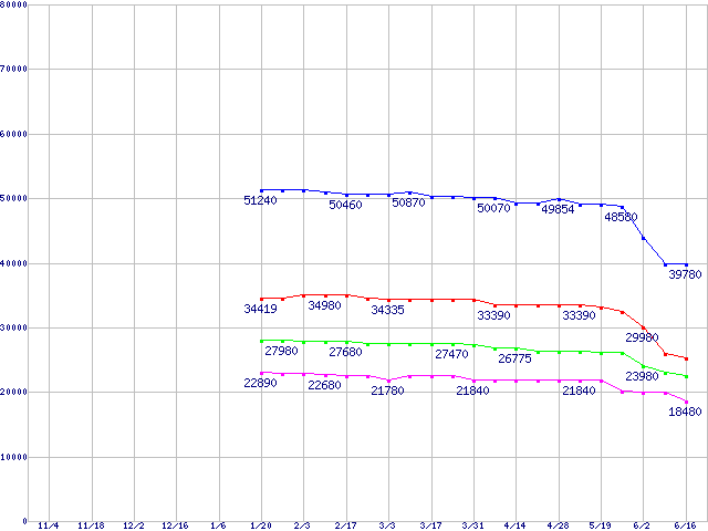 | LGA 775 (FSB 800MHz,L2 2MB,Hyper-Threading,EM64T対応)の最安値推移 | | | (2005年11月4日~2006年6月16日) |