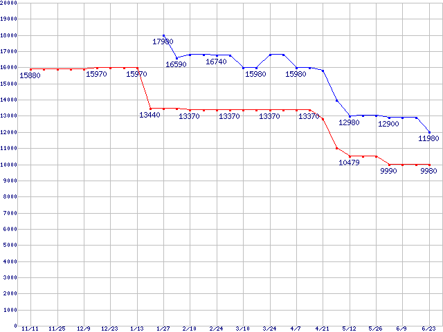 mPGA 479M・FSB 533MHzの最安値推移