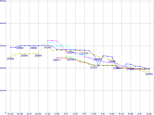 HDD主要製品(最安値2万円以上)の最安値推移