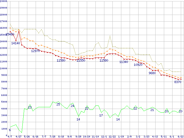 | HDT722525DLAT80 (250GB,8MB)の価格推移 | | | (2005年4月7日~2006年6月22日) |