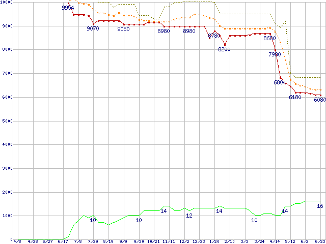 | Celeron D 331 (2.66GHz)の価格推移 | | | (2005年4月8日~2006年6月23日) |