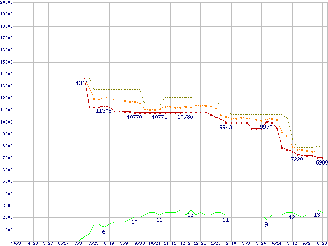 | Celeron D 341 (2.93GHz)の価格推移 | | | (2005年4月8日~2006年6月23日) |