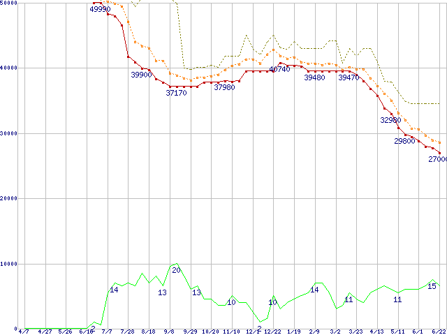 | HDS725050KLA360 (500GB,16MB)の価格推移 | | | (2005年4月7日~2006年6月22日) |