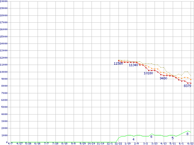 | ST3200827A (200GB,8MB)の価格推移 | | | (2005年4月7日~2006年6月22日) |
