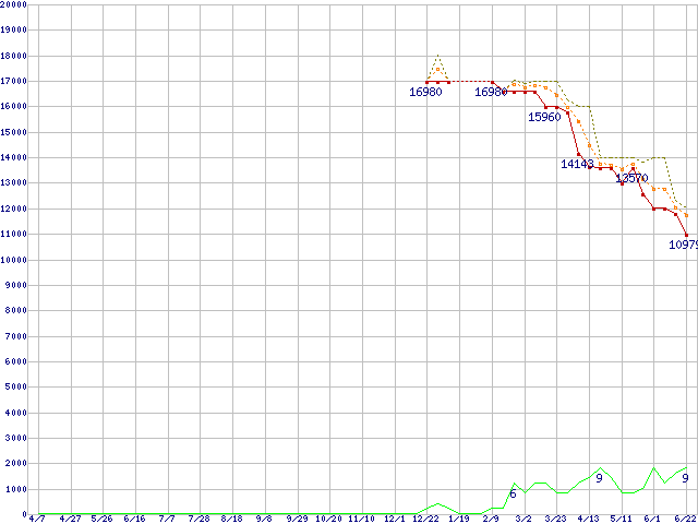 | WD3200KS (320GB)の価格推移 | | | (2005年4月7日~2006年6月22日) |