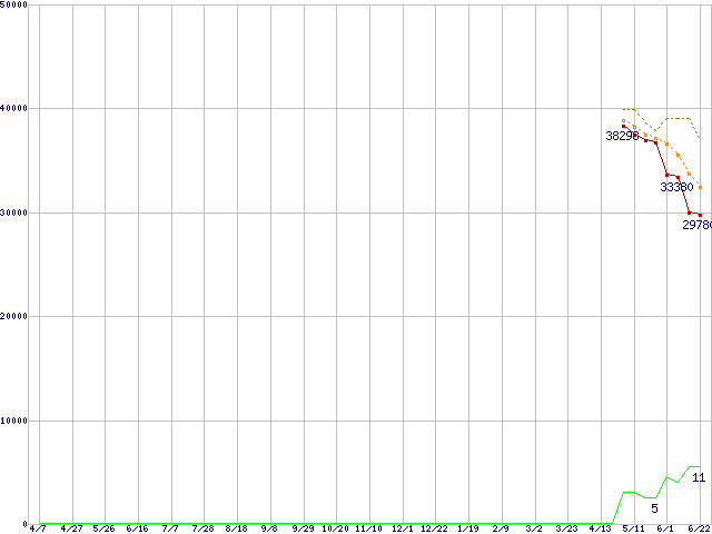 | ST3500630AS (500GB,16MB)の価格推移 | | | (2005年4月7日~2006年6月22日) |