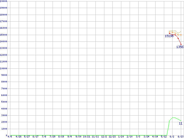 | Sempron 3600+ (2.0GHz,L2 256KB)の価格推移 | | | (2005年4月8日~2006年6月23日) |