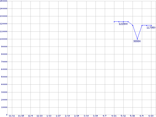 | LGA 775 (FSB 1066MHz,L2 2MB×2,Dual Core,Hyper-Threading,EM64T対応)の最安値推移 | | | (2005年11月11日~2006年6月23日) |