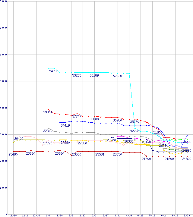 CPU主要製品(最安値3万円~6万円未満)の最安値推移