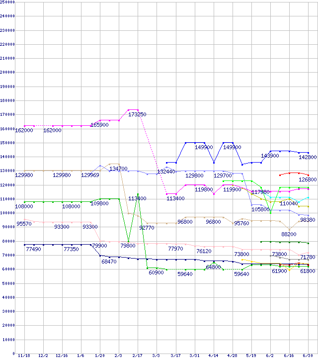 CPU主要製品(最安値3万円~6万円未満)の最安値推移
