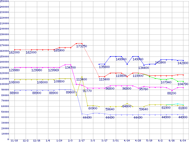 Socket 754・FSB 800MHzの最安値推移