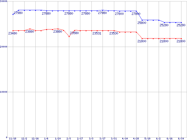 mPGA 479M・FSB 533MHzの最安値推移