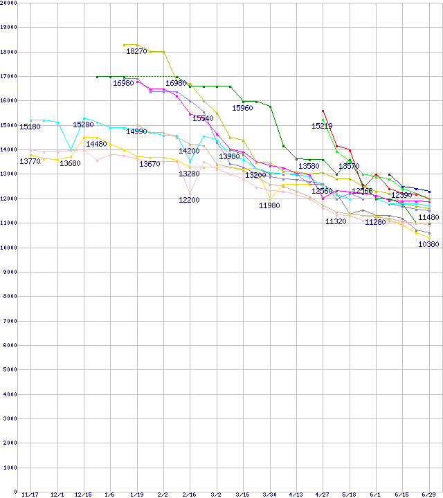 HDD 400~500GB未満の最安値推移