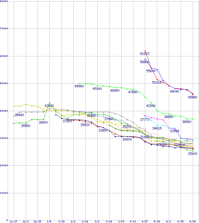 | HDD 500GB以上の最安値推移 | | | (2005年11月17日~2006年6月29日) |