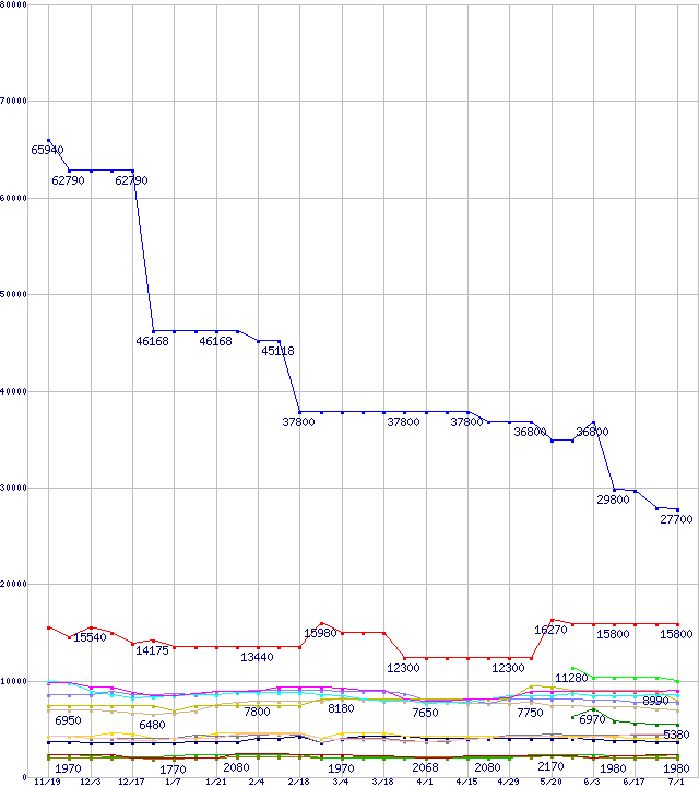 PC2-4200*(DDR2-533) DDR2 SDRAM DIMMの最安値推移