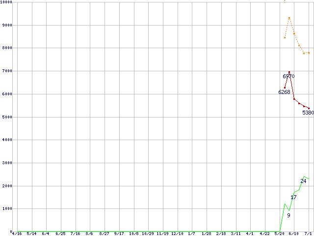 | PC2-6400 512MBの価格推移 | | | (2005年4月16日~2006年7月1日) |