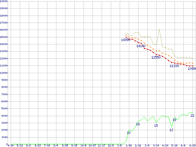 | 6V300F0 (300GB,16MB)の価格推移 | | | (2005年4月14日~2006年6月29日) |