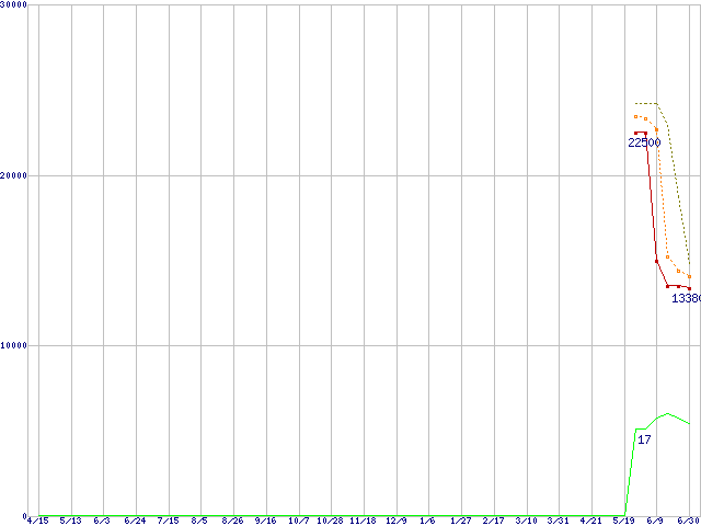 | Athlon 64 3500+ (2.2GHz,L2 512KB)の価格推移 | | | (2005年4月15日~2006年6月30日) |