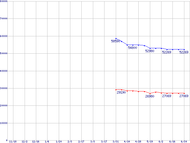 LGA 771(FSB 667MHz,Dual Core,L2 2MB×2)の最安値推移