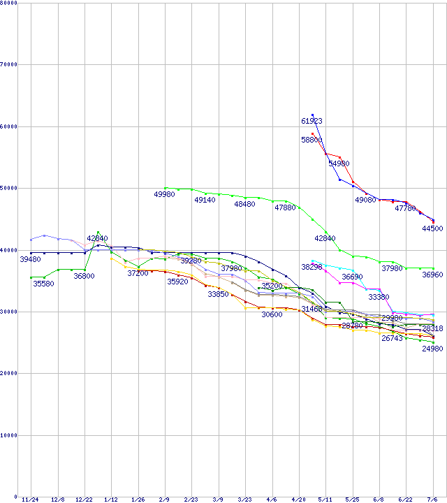 | HDD 500GB以上の最安値推移 | | | (2005年11月24日~2006年7月6日) |