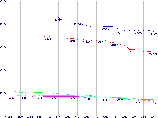 HDD 160~200GB未満の最安値推移