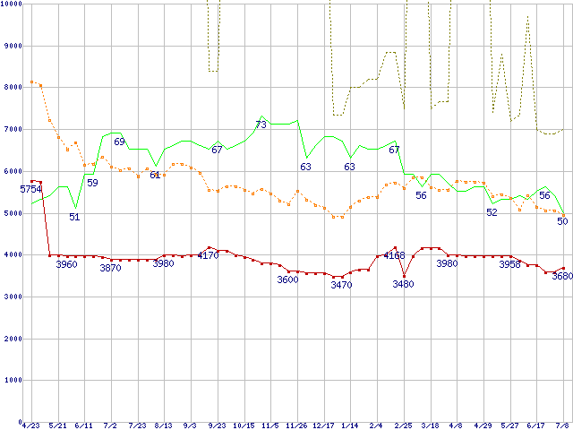 PC2-4200*(DDR2-533) DDR2 SDRAM DIMMの最安値推移